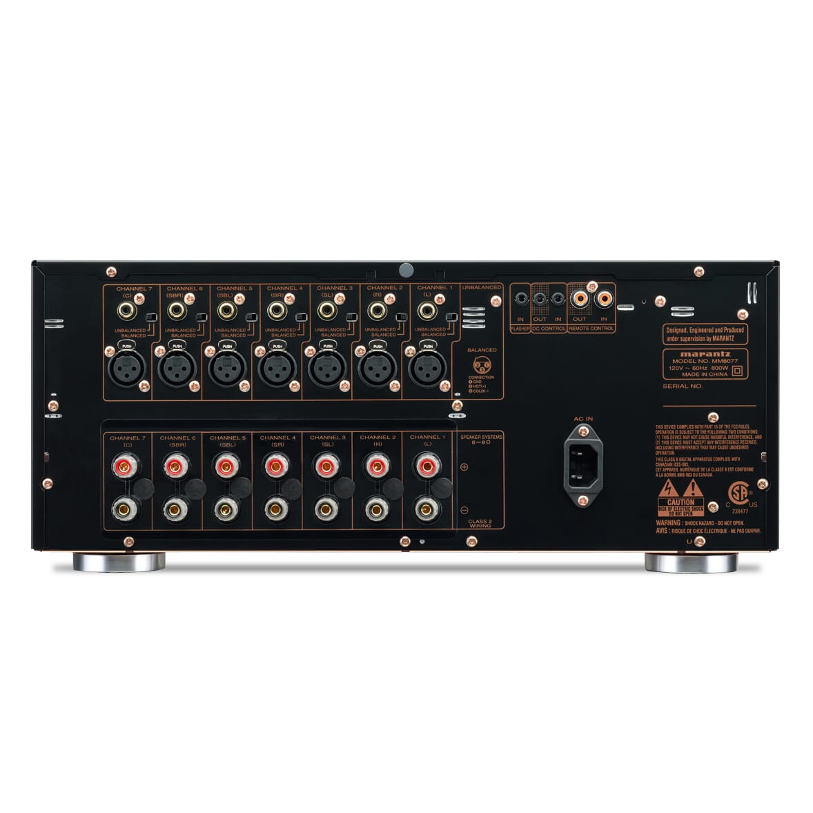 Designed for the ultimate music and movie surround sound experience, the Marantz MM8077 7-channel power amplifier delivers power and detail, and is rated at 150 watts per channel into 8 ohms, and 180 watts per channel into 6 ohms.