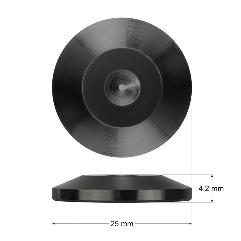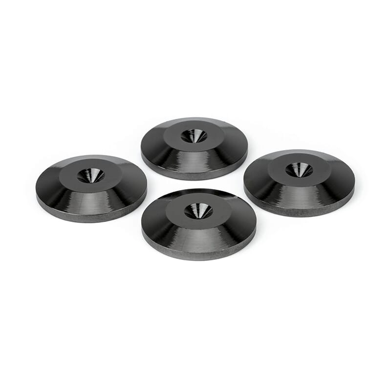 Dynavox Parkettbeskyttere leveres i en 4-pakning og er laget i metall med en utskåret fordypning som holder spikesene trygt på plass. På den måten unngår du riper og merker i gulvet, samtidig som du får et rent og pent uttrykk.
