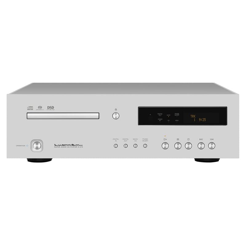 D-07X bygger videre på suksessen til D-10X med luksuriøs design og imponerende ytelse. Denne digitale mediaspilleren leverer en overveldende lydopplevelse og formidler musikkens stemning og følelse på enestående vis. Som i alle Luxman sine produkter er kvaliteten bokstavelig talt til å ta og føle på. Egenvekten på 17kg vitner om at her er det ikke spart på verken strømforsyning, resonansdemping eller byggekvalitet i kabinettet. Selve CD-mekanismen beveger seg lydløst og elegant, og alle knapper og brytere gir en taktil kvalitetsfølelse som man aldri vil gå lei. :-)
